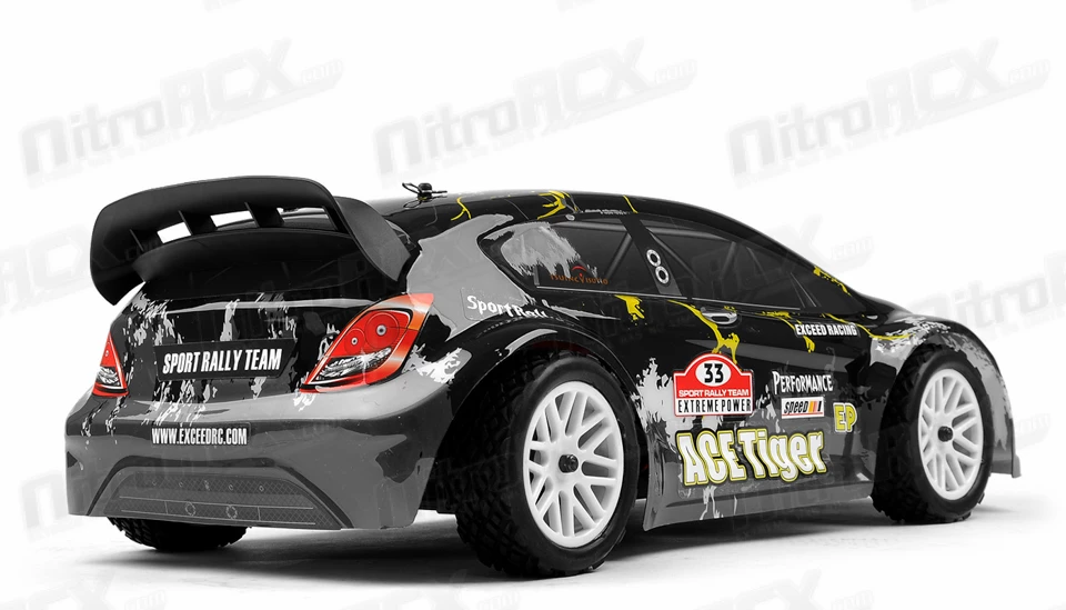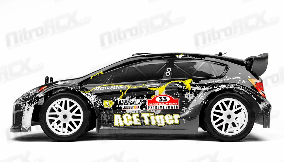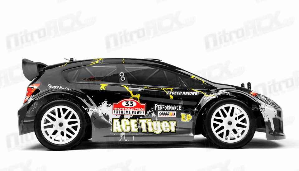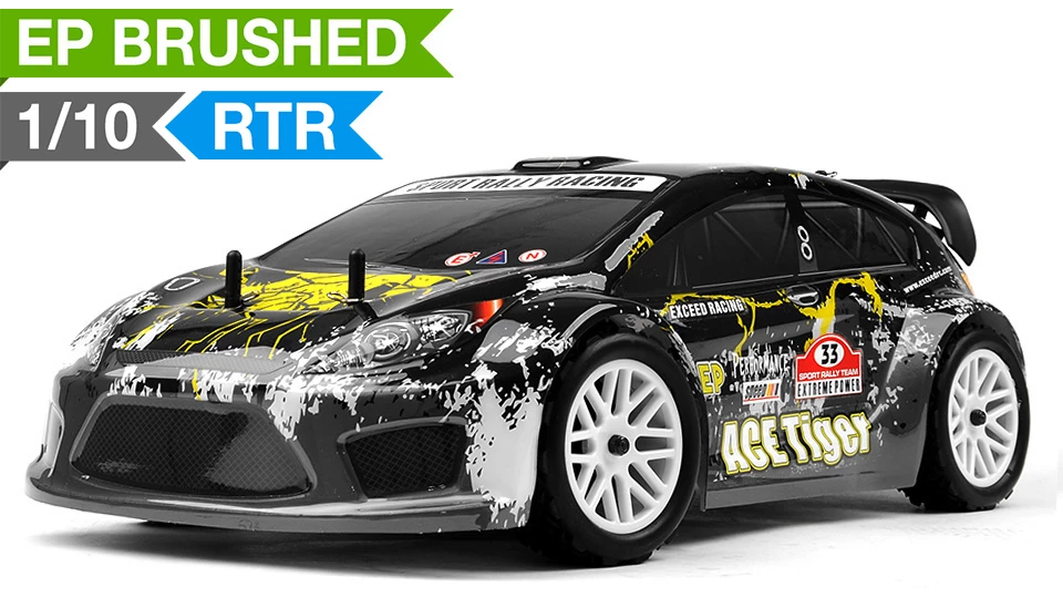 The Exceed AceTiger Rally car ready to run package also includes a 2.4ghz radio system. With frequency hopping technology, interference is a thing of the past. No longer do you have to worry about your specific channel. The radio system will automatically take care of that for you while you are focused on handling this beast of a machine.Â