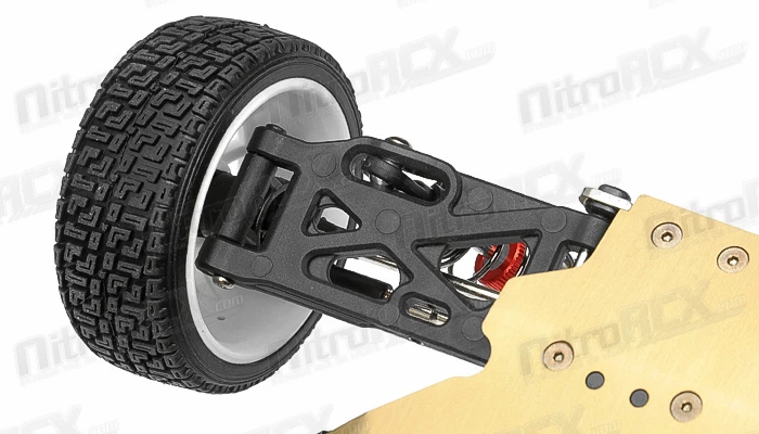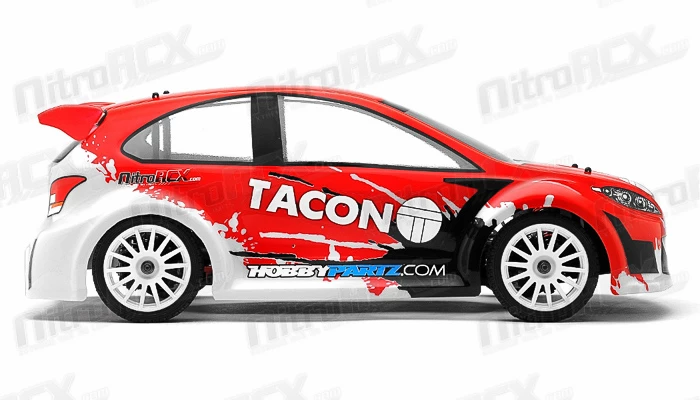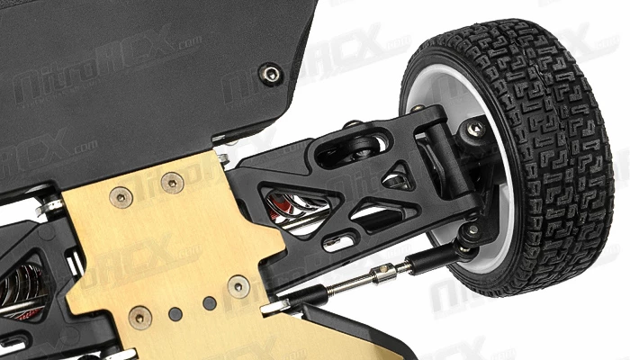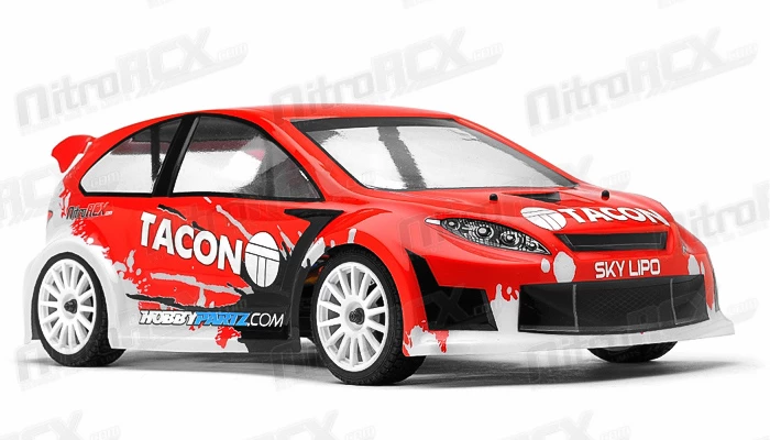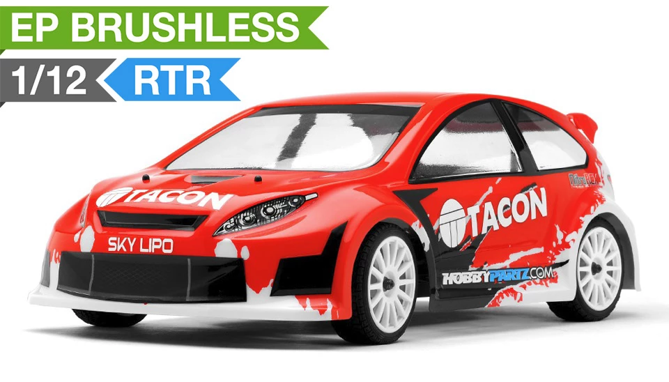 The Tacon Ranger is a 1/12 scale Rally car. It was designed from the ground up with pure performance in mind. Performance features derived from 1/8 scale trucks and buggies have been shrunken down in size and engineered to deliver the utmost performance in a small rally car package. A 2mm thick aluminum chassis serves as the base of this rally car. Mounted on the front and rear is 2.5mm thick 6061-T6 anodized aluminum shock towers towering over the planetary geared fluid filled differentials. Attached to the robust towers are aluminum threaded oil filled shocks providing plush and ground hugging dampening. The steering tie rods and upper and lower arms are adjustable for fine tuning of the toe and camber, effectively altering the handling characteristics of the car.