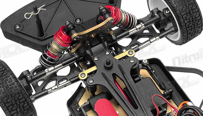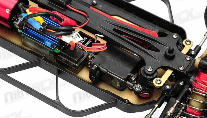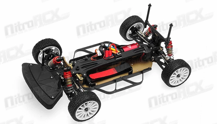 This car has awesome power to weight ratio. Weighing in at slightly over 2 lbs, the vehicle is easily propelled by the 380 sized 4500KV brushless motor. A 35 amp programmable brushless electronic speed controller delivers the current efficiently through an included 72.v 1100mah Ni-Mh battery and charger. All of this power transfers through a shaft driven four wheel drive system providing ground clawing action through the performance wheels and rally spec tires. We recommend a Gens Ace 7.4v 1800mah lithium battery for an exponential increase in power and efficiency.?