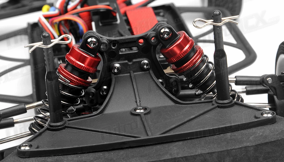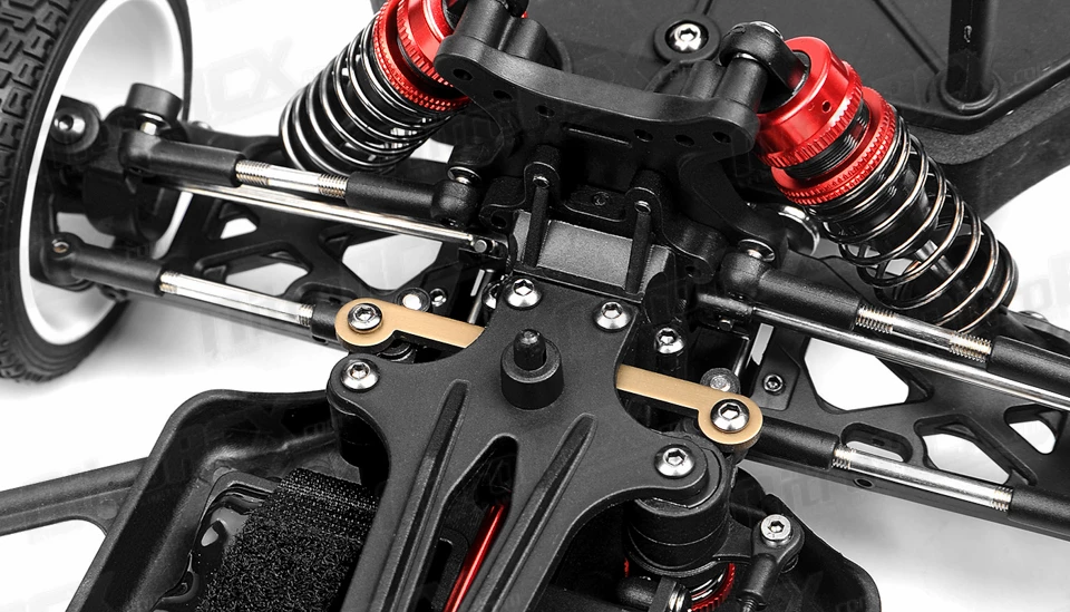 The Tacon Ranger is a 1/12 scale Rally car. It was designed from the ground up with pure performance in mind. Performance features derived from 1/8 scale trucks and buggies have been shrunken down in size and engineered to deliver the utmost performance in a small rally car package. A composite chassis serves as the base of this rally car. Mounted on the front and rear is thick composite shock towers towering over the planetary geared fluid filled differentials. Attached to the robust towers are aluminum capped, threaded coil over, oil filled shocks providing plush and ground hugging dampening. The steering tie rods and upper and lower arms are adjustable for fine tuning of the toe and camber, effectively altering the handling characteristics of the car.