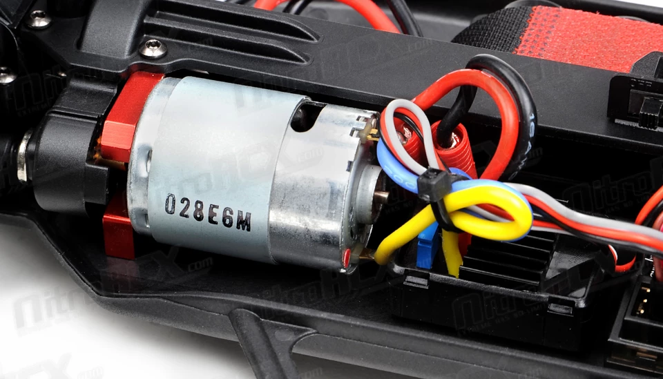 This car has awesome power to weight ratio. Weighing in at slightly over 2 lbs, the vehicle is easily propelled by the 380 sized high performance brushed motor. A brushed electronic speed controller delivers the current efficiently through an included 7.2v 1100mah Ni-Mh battery and charger. The brushed electronic speed controller is lipo ready and can accept 7.4v lipo batteries with a quick switch of a jumper switch. All of this power transfers through a shaft driven four wheel drive system providing ground clawing action through the performance wheels and rally spec tires. We recommend a Gens Ace 7.4v 1800mah lithium battery for an exponential increase in power and efficiency.?