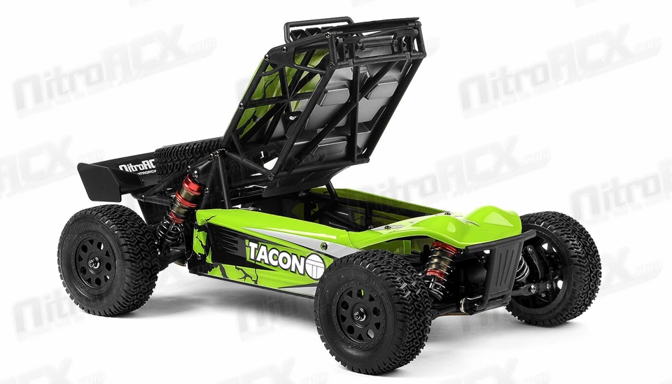 The Tacon Cavalry Desert Buggy ready to run package also includes a 2.4ghz radio system. With frequency hopping technology, interference is a thing of the past. No longer do you have to worry about your specific channel. The radio system will automatically take care of that for you while you are focused on handling this beast of a machine.