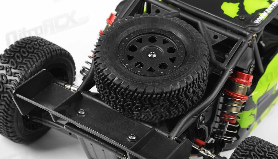 This desert buggy has an awesome power to weight ratio. Weighing in at slightly over 2 lbs, the vehicle is easily propelled by the 380 sized 4500KV brushless motor. A 35 amp programmable brushless electronic speed controller delivers the current efficiently through an included 7.2v 1100mah Ni-Mh battery and charger. All of this power transfers through a shaft driven four wheel drive system providing ground clawing action through the performance wheels off road knobby tires. We recommend a Gens Ace 7.4v 1800mah lithium battery for an exponential increase in power and efficiency.?