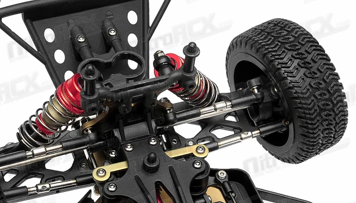 The Tacon Thriller is a 1/14 scale short course truck. It was designed from the ground up with pure performance in mind. Performance features derived from 1/8 scale trucks and buggies have been shrunken down in size and engineered to deliver the utmost performance in a smaller scale. A 2mm thick aluminum chassis serves as the base of this short course truck. Mounted on the front and rear is 2.5mm thick 6061-T6 anodized aluminum shock towers towering over the planetary geared fluid filled differentials. Attached to the robust towers are aluminum threaded oil filled shocks providing plush and ground hugging dampening. The steering tie rods and upper and lower arms are adjustable for fine tuning of the toe and camber, effectively altering the handling characteristics of the truck.