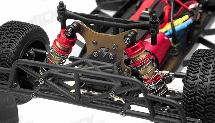 This truck has awesome power to weight ratio. Weighing in at slightly over 2 lbs, the truck is easily propelled by the 380 sized 4500KV brushless motor. A 35 amp programmable brushless electronic speed controller delivers the current efficiently through an included 72.v 1100mah Ni-Mh battery and charger. All of this power transfers through a shaft driven four wheel drive system providing ground clawing action through the off road wheels and all terrain tires. We recommend a Gens Ace 7.4v 1800mah lithium battery for an exponential increase in power and efficiency. ?