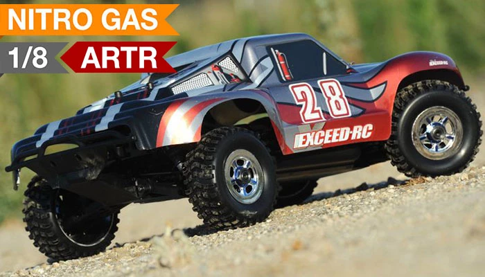 1/8th Exceed RC Madbash Nitro Powered Almost Ready To Run ARTR Racing Edtion Rally .28 Engine Car Bravo Red RC Remote Control Radio Short Course Truck