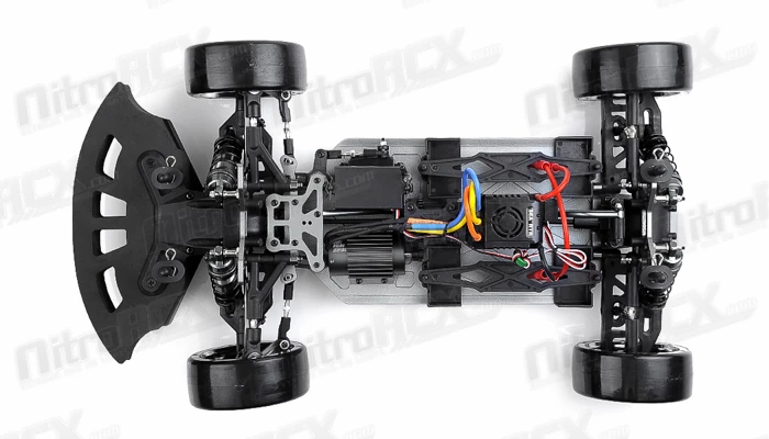 This car is loaded full of features. Power is delivered through a high performance 540L 2150KV brushless motor and supported by an 80A Brushless Hobbywing electronic speed control. Enough power to deliver tire-shredding torque and reach the high RPMs needed for high-speed drifting. The 2.4ghz Radio system keeps the driver in full control. The Racing edition features all the parts in the limited edition but also includes Big Bore threaded aluminum shock bodies and front and rear aluminum differential and control arm braces for even more control. Also the Racing edition has aluminum suspension mount, Aluminum front brace, steel metal main gear, and 16mm aluminum stocks. Oiled filled shocks and the included sway bars keep the car in control during hard cornering. The ESC is mounted right in the center of the car and the two batteries on either side of it to create the best possible balance and weight ratio for superb handling. All the features of this car scream performance in a ready to run package.