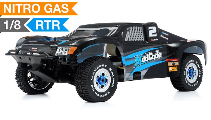 Each Mad Code comes decked out with one of three fully racing style truck bodies, wheels and tires. This is the high-performance R/C Rally car in its’ class built with Level .21 engine for speed of swiftness, polished aluminum chassis to provide clean look as well as sturdiness, adjustable shocks to have perfect landing, a bigger fuel tank that can hold 150cc.