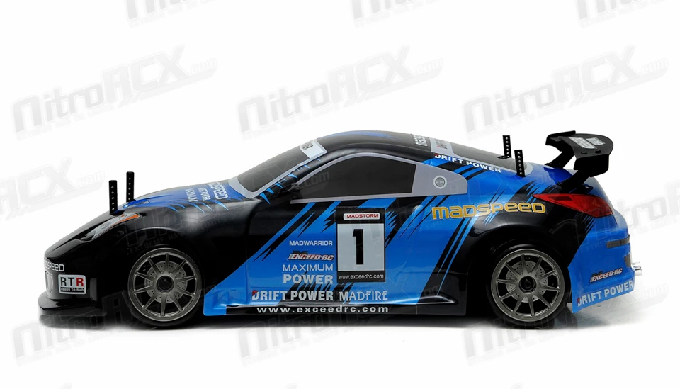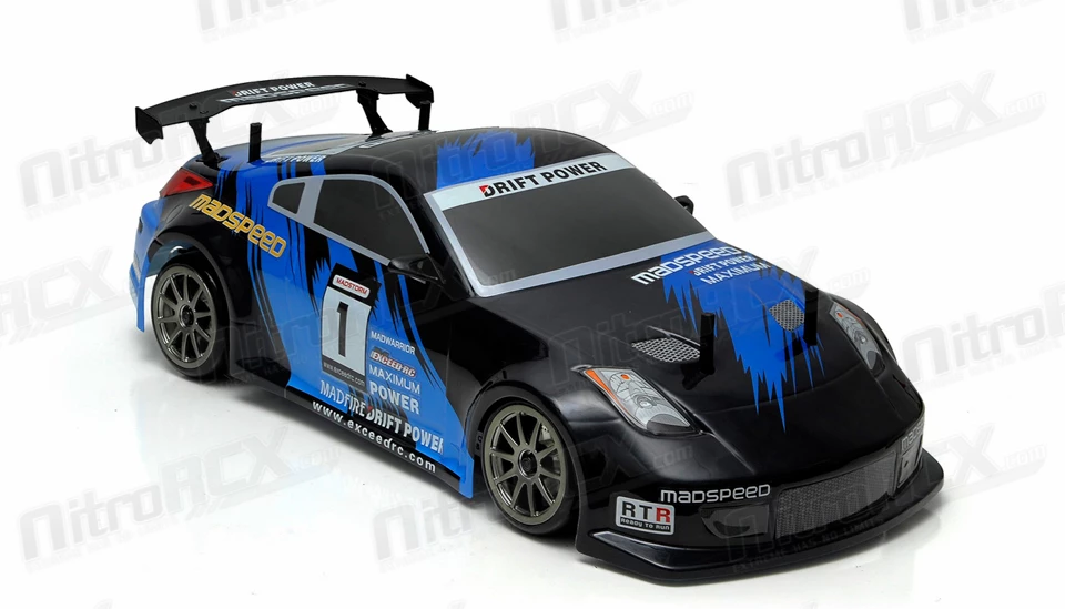 Team Exceed RC has taken steps up with the most successful drift car platforms yet and adapted it for intense wheel-spinning action. The result is the MadSpeed Drift Car. Ready to hit the streets right from the box, the MadSpeed Drift Car packs a long list of features and a distinctive look that will leave the competition in the dust. Power is routed through a high performance motor and electronic speed control, while a 540 motor offers the tire-shredding torque and RPMs you need for high-speed drifting. In addition to the unmatched power and ease of use, the MadSpeed looks eye catch on the road that everyone wants one. The prepainted body features detailed side mirrors, a rear wing, chrome exhaust and more, for a true street machine that can turn heads and take home trophies.