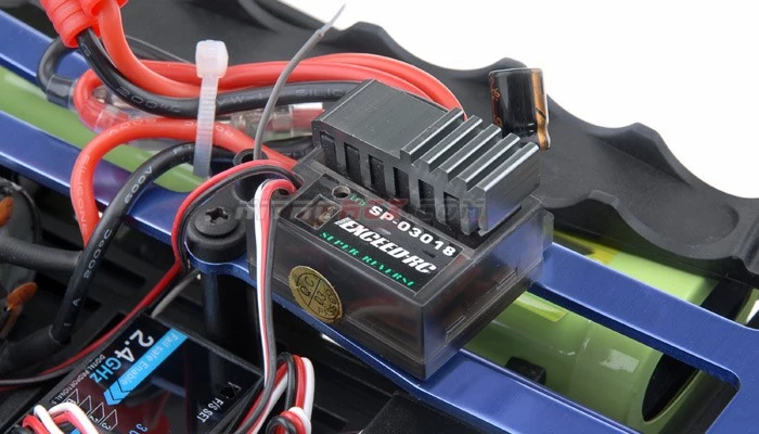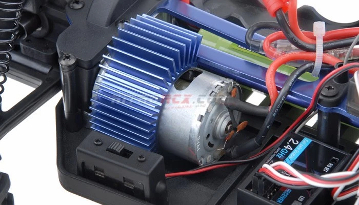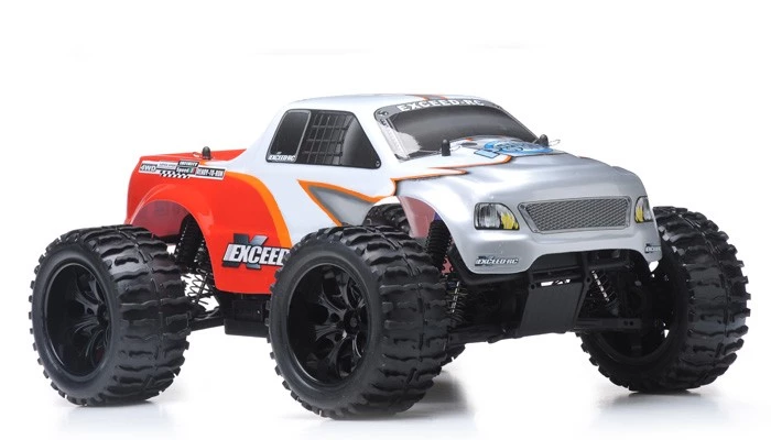 The Exceed RC Infinitive EP Monster Truck is packed with loads of features that will provide hours of action packed off road smashing. The 2.4ghz transmitter and receiver system ensures you will have excellent communication between driver and vehicle. The transmitter also allows dual-rate adjustments for throttle and steering so you can fine tune the power delivery and steering control of this truck. The power-train is reinforced and will handle extreme terrain. Metal geared front and rear differentials are driven by an aluminum center driveshaft and distributes the power to all four wheels. The power department is handled by a brushed 540 motor and supported by a 7.2v 1800mah Ni-Mh battery with charger included. Camber and toe settings are adjustable via turnbuckle linkages which allow you to make precise adjustments for the terrain your truck is smashing through. The high ground clearance paired with the large wheels and tires ensures this truck climbs through the toughest obstacles. This truck comes out the box completely ready to run with the exception of 4 AA batteries for the transmitter. Simply pull the truck out, charge the battery and your ready tame the unknown.