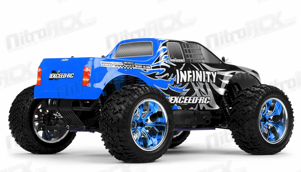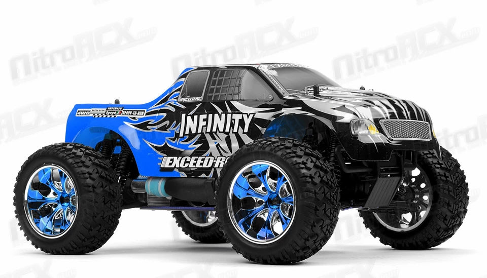 The most popular 1/10 4 wheel drive monster truck in the world just got better! At each evolutionary step, the Infinitive has been improved upon to keep it at the peak of the RC monster truck field. So how do you make an Infinitive better? Extra speed, extra adjustability, extra toughness! The new Infinitive is packed with features that have been suggested by Infinitive owners: More room for the electronics, easier access to the differentials and transmission, and more suspension adjustability. The result is the best Infinitive ever.