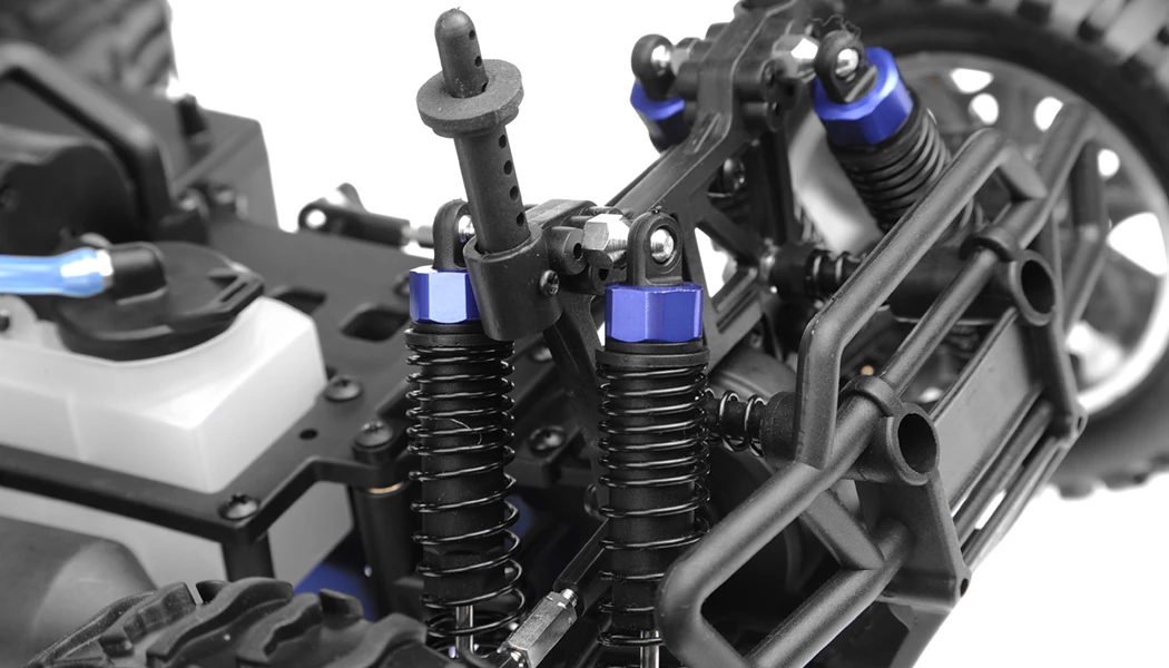 8 long stroke oil filled shocks with firm tuned springs keep the wheels on the ground