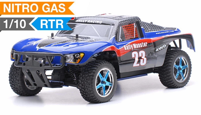 Exceed RC 1/10 Rally Monster GP Nitro Gas Powered .18 Engine 2-Speed Transmission Ready To Run RC Remote Control Radio Car Truck (Carbon Blue)