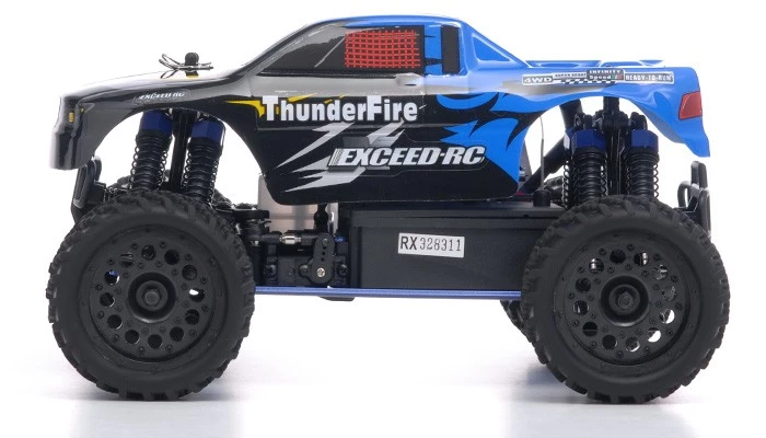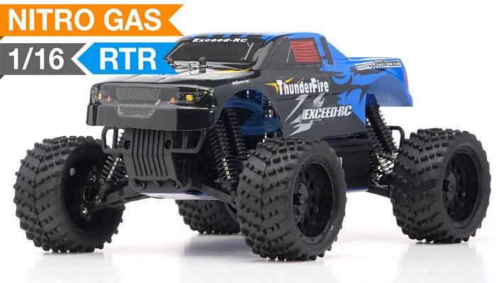 The Exceed-RC is reinventing the trucks to a whole new level, a compact much smaller version of the popular 1/10Th scale Infinity. The New 2.4Ghz Exceed-RC 1/16Th Scale Thunder Fire Nitro Gas Truck is the newest off road mini truck model full scale. The Thunder Fire is build with aluminum tower and aluminum capped oil filled coil over shocks for optimal baja racing or everyday thrashing. Powering this mini monster is an oversized .07 CXP engine with a wide band transmission, propelling this Thunder Fire to top speeds. The Excced-RC Thunder Fire is one of a kind and with the mini scale always fascinates hobby operators these days.