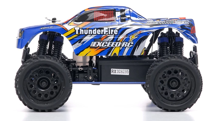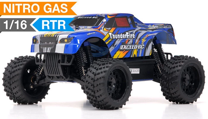 The Exceed-RC is reinventing the trucks to a whole new level, a compact much smaller version of the popular 1/10Th scale Infinity. The New 2.4Ghz Exceed-RC 1/16Th Scale Thunder Fire Nitro Gas Truck is the newest off road mini truck model full scale. The Thunder Fire is build with aluminum tower and aluminum capped oil filled coil over shocks for optimal baja racing or everyday thrashing. Powering this mini monster is an oversized .07 CXP engine with a wide band transmission, propelling this Thunder Fire to top speeds. The Excced-RC Thunder Fire is one of a kind and with the mini scale always fascinates hobby operators these days.