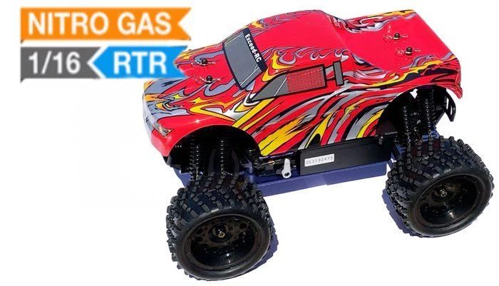 The Exceed-RC is reinventing the trucks to a whole new level, a compact much smaller version of the popular 1/10Th scale Infinity. The New 2.4Ghz Exceed-RC 1/16Th Scale Thunder Fire Nitro Gas Truck is the newest off road mini truck model full scale. The Thunder Fire is build with aluminum tower and aluminum capped oil filled coil over shocks for optimal baja racing or everyday thrashing. Powering this mini monster is an oversized .07 CXP engine with a wide band transmission, propelling this Thunder Fire to top speeds. The Excced-RC Thunder Fire is one of a kind and with the mini scale always fascinates hobby operators these days.