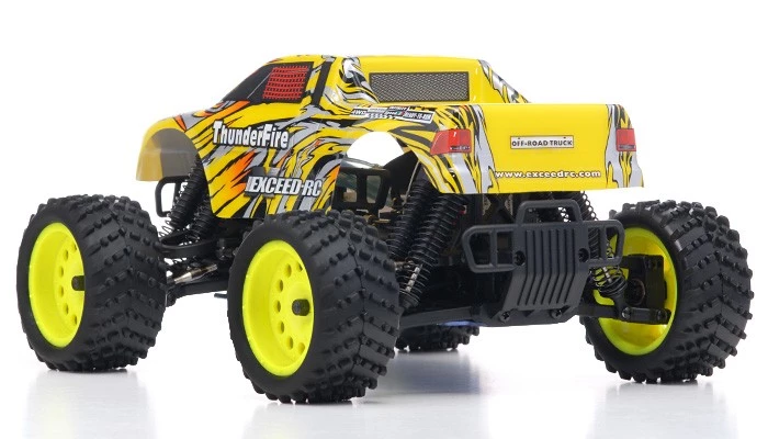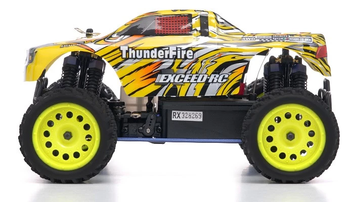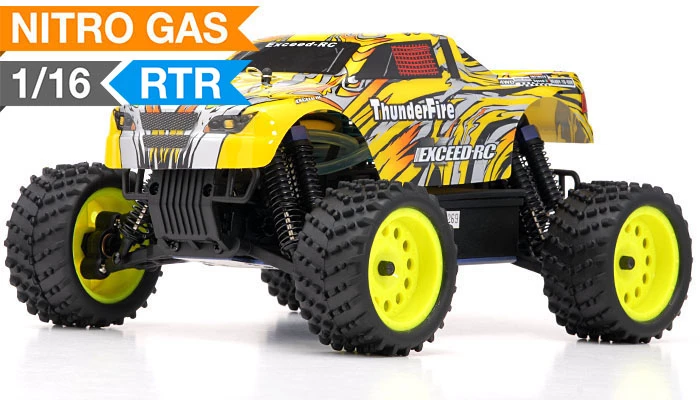 The Exceed-RC is reinventing the trucks to a whole new level, a compact much smaller version of the popular 1/10Th scale Infinity. The New 2.4Ghz Exceed-RC 1/16Th Scale Thunder Fire Nitro Gas Truck is the newest off road mini truck model full scale. The Thunder Fire is build with aluminum tower and aluminum capped oil filled coil over shocks for optimal baja racing or everyday thrashing. Powering this mini monster is an oversized .07 CXP engine with a wide band transmission, propelling this Thunder Fire to top speeds. The Excced-RC Thunder Fire is one of a kind and with the mini scale always fascinates hobby operators these days.