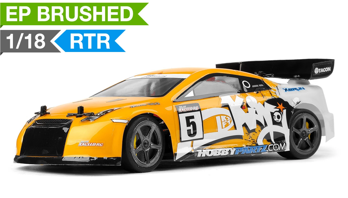 The 1/18 Scale Exceed RC Mad Pulse allows you to get your racing and drifting fix anywhere. Its micro size and performance features make it an awesome machine for everyone and everywhere. With features and components such as a 4 wheel drive transmission, coil shocks, fully adjustable suspension, and a high performance electronic system, this car is ready for some serious racing action. This particular Mad Pulse is equipped with grip tires. Set up a road course in your living room and battle for the top finish!