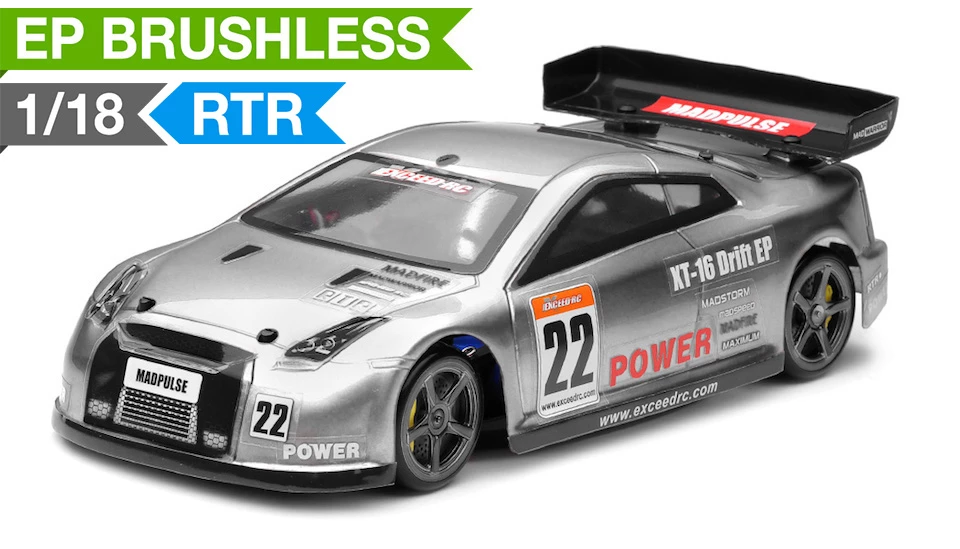 The 1/18 Scale Exceed RC Mad Pulse drift allows you to get your racing and drifting fix anywhere. Its micro size and performance features make it an awesome drifting machine for everyone. With features and components such as a 4 wheel drive transmission, coil shocks, fully adjustable suspension, and a high performance electronic system, this car is ready for some serious action.