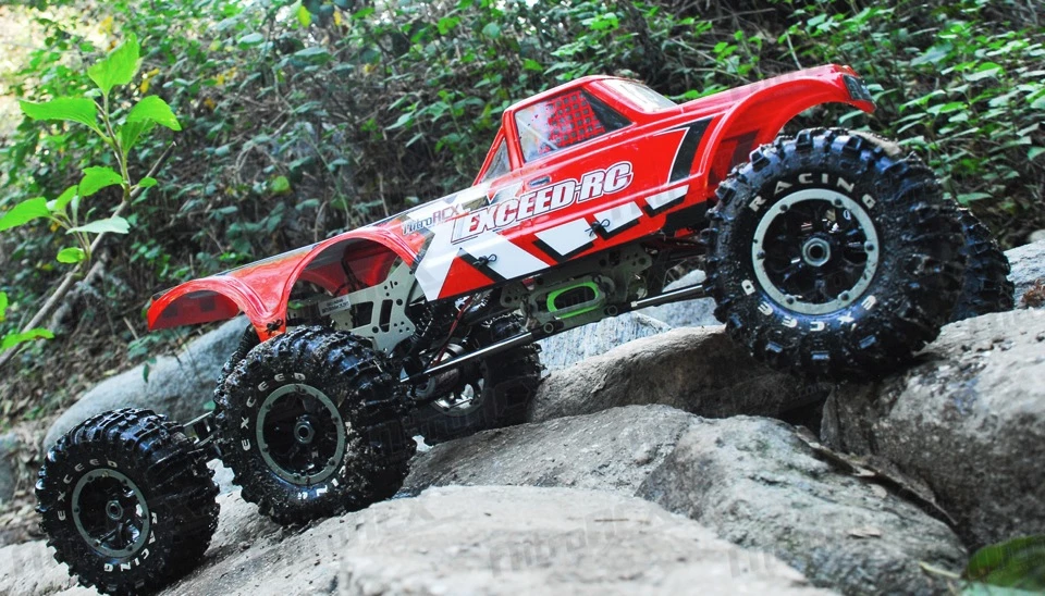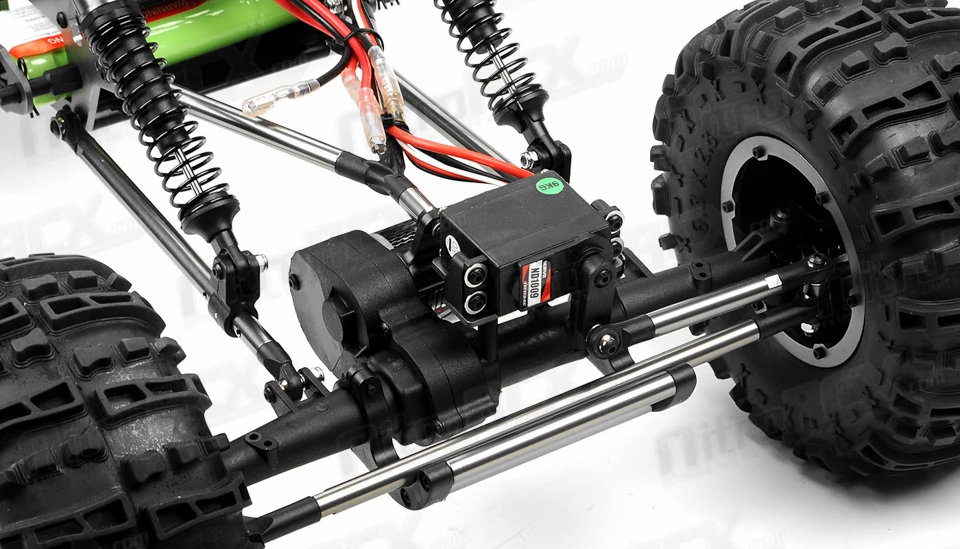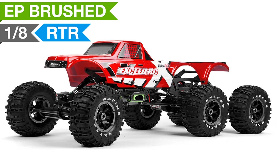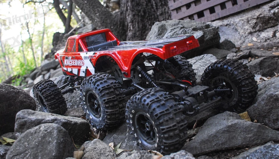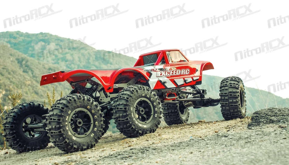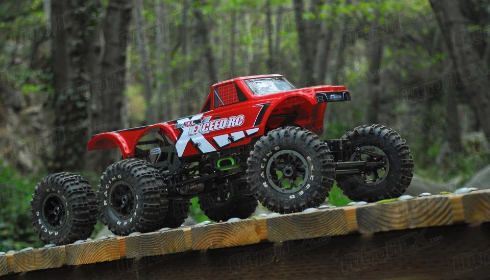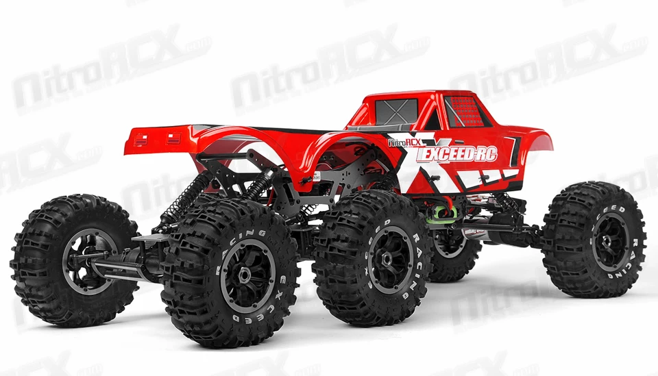 Are you ready for this rock stomping, boulder chomping Mad Torque 6×6 Crawler? Challenge the laws of gravity with the ready-to-run Mad Torque 6×6 truck. It is complete with front and rear multi-link suspension, 3 solid axles, a full aluminum chassis design, and six oil filled shocks. This setup allows this 6×6 MadTorque to flex and articulate over any obstacle. With triple high-torque electric brushed 540 Motors and dual electronic speed controller system, this crawler is pumping out some serious torque. This truck has dual electronic speed controllers that have been tuned specifically for rock crawling mayhem and includes a 2.4ghz Exceed radio system for precise driver to machine interface. Aggressive true bead lock rock crawling wheels married to aggressive terrain shredding treaded tires, this crawler is ready to tackle all types of mystery terrain.