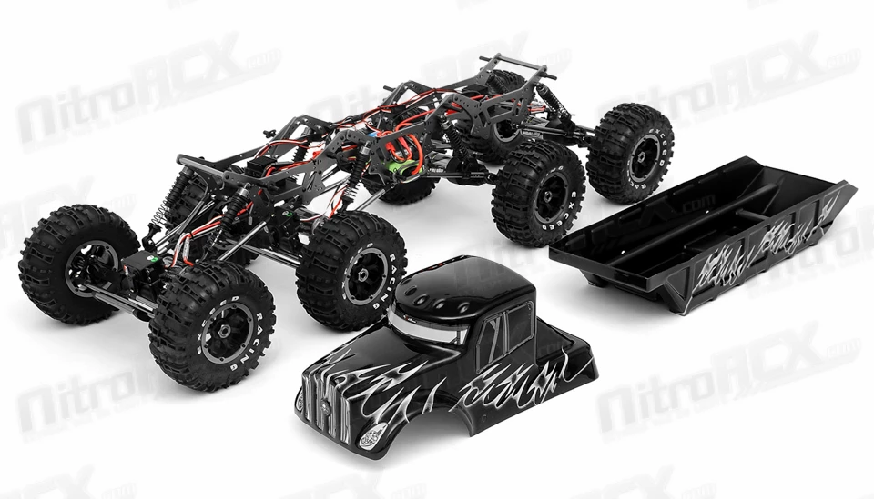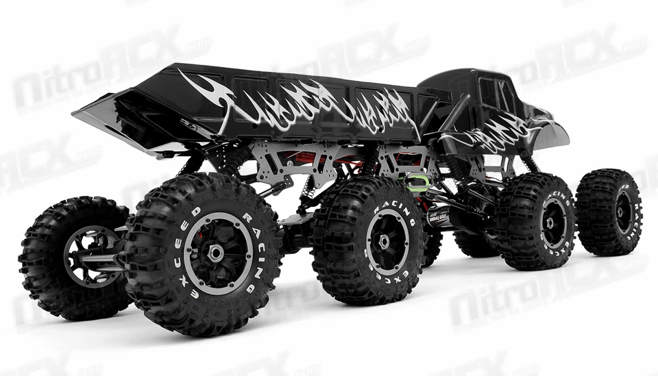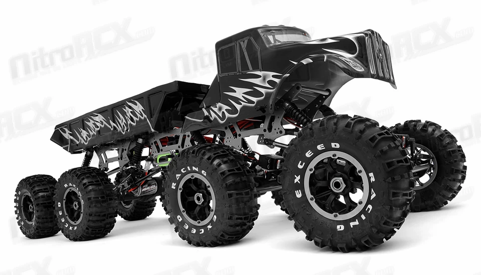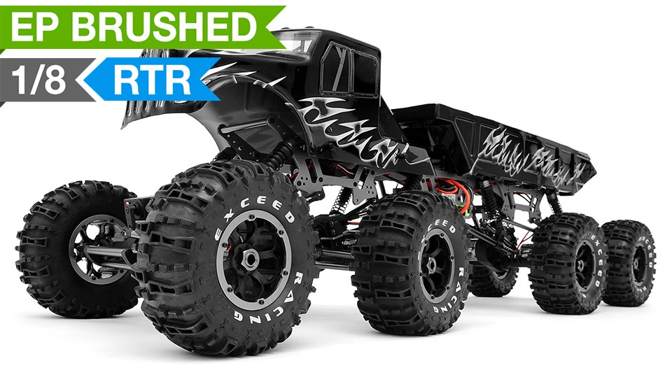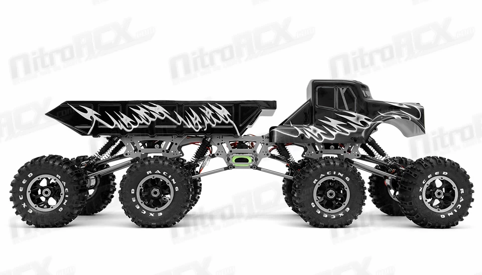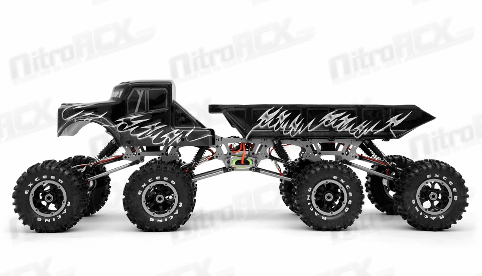 The Mad Torque series of RC Trucks veered off normal and arrived at extreme. The new Mad Torque 8×8 is what they have created. This new Mad Torque is a ready to run 8×8 Crawler complete with multi link suspension, 4 solid axles, aluminum chassis, oil filled shocks, and locked differentials. Semi truck front cab with a dump truck rear end ensure the trucks ability to haul large payloads. ?Designed specifically for the tough demands of traversing gravel, sand, asphalt, snow, wood chips or rocks. Created for the customer who demands more wheels and power to the ground.