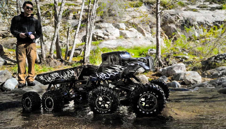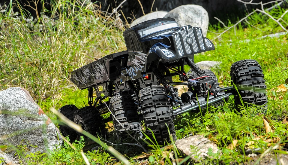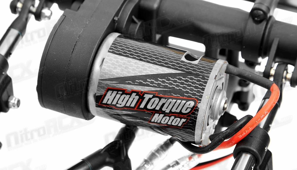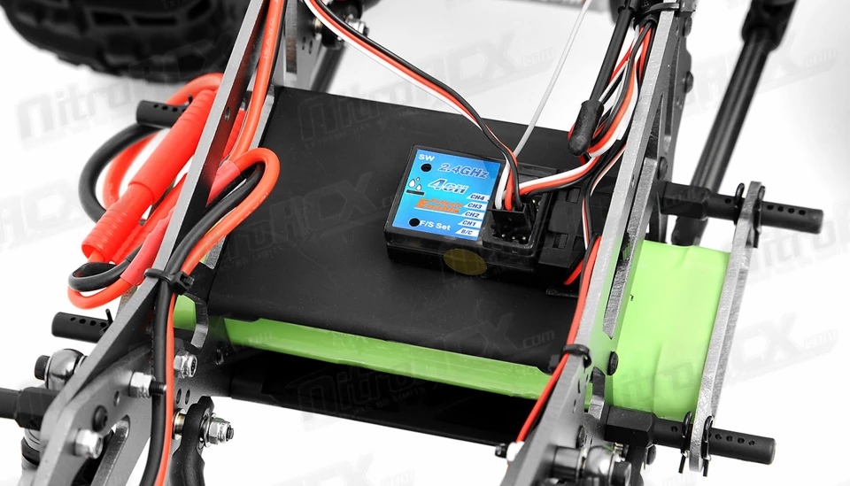 The power system consists of twin brushed electronic speed controllers providing power to the four high torque 540 motors. A 7.2v 3300mah Ni-MH Battery delivers about 10 minutes of crawl time. Twin 9kg digital metal geared steering servos steer this beast in the direction you tell it to via an Exceed RC 2.4ghz radio system. This system ensures interference free transmission to connect human to machine.