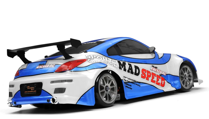 Team Exceed RC has taken steps up with the most successful drift car platforms yet and adapted it for intense wheel-spinning action. The result is the MadSpeed Drift Car Brushless Drift Car. Ready to hit the streets right from the box, the MadSpeed Drift Car Brushless Drift Car packs a long list of features and a distinctive look that will leave the competition in the dust. Power is routed through a high performance motor and electronic speed control, while a 380 3000KV Brushless motor and 35A Brushless ESC offers the tire-shredding torque and RPMs you need for high-speed drifting. In addition to the unmatched power and ease of use, the Brushless MadSpeed Drift Car looks eye catch on the road that everyone wants one. The prepainted body features detailed side mirrors, a rear wing, chrome exhaust and more, for a true street machine that can turn heads and take home trophies.