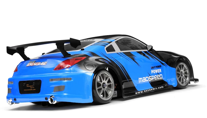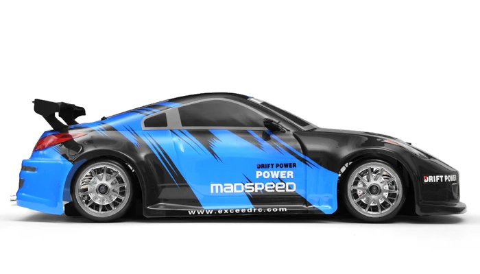 Team Exceed RC has taken steps up with the most successful drift car platforms yet and adapted it for intense wheel-spinning action. The result is the MadSpeed Drift Car Brushless Drift Car. Ready to hit the streets right from the box, the MadSpeed Drift Car Brushless Drift Car packs a long list of features and a distinctive look that will leave the competition in the dust. Power is routed through a high performance motor and electronic speed control, while a 380 3000KV Brushless motor and 35A Brushless ESC offers the tire-shredding torque and RPMs you need for high-speed drifting. In addition to the unmatched power and ease of use, the Brushless MadSpeed Drift Car looks eye catch on the road that everyone wants one. The prepainted body features detailed side mirrors, a rear wing, chrome exhaust and more, for a true street machine that can turn heads and take home trophies.