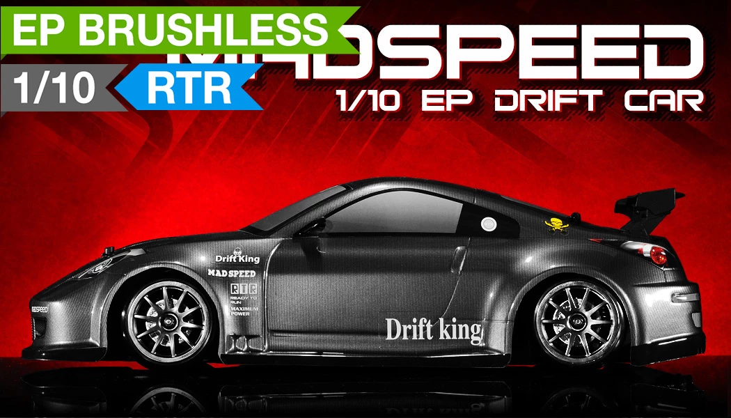 Team Exceed RC has taken steps up with the most successful drift car platforms yet and adapted it for intense wheel-spinning action. The result is the MadSpeed Drift Car Brushless Drift Car. Ready to hit the streets right from the box, the MadSpeed Drift Car Brushless Drift Car packs a long list of features and a distinctive look that will leave the competition in the dust. Power is routed through a high performance motor and electronic speed control, while a 380 3000KV Brushless motor and 35A Brushless ESC offers the tire-shredding torque and RPMs you need for high-speed drifting. In addition to the unmatched power and ease of use, the Brushless MadSpeed Drift Car looks eye catch on the road that everyone wants one. The prepainted body features detailed side mirrors, a rear wing, chrome exhaust and more, for a true street machine that can turn heads and take home trophies.