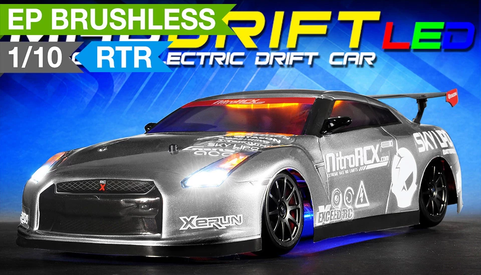 Team Exceed RC has taken steps up with the most successful drift car platforms yet and adapted it for intense wheel-spinning action. The result is the MadSpeed Drift Car Brushless Drift Car. Ready to hit the streets right from the box, the MadSpeed Drift King Brushless Drift Car packs a long list of features and a distinctive look that will leave the competition in the dust. Power is routed through a high performance motor and electronic speed control, while a 380 3000KV Brushless motor and 35A Brushless ESC offers the tire-shredding torque and RPMs you need for high-speed drifting. In addition to the unmatched power and ease of use, the Brushless MadSpeed Drift Car looks eye catch on the road that everyone wants one and now this new Version come with LED Head/Tail and interior Lights. The prepainted body features detailed side mirrors, a rear wing, chrome exhaust and more, for a true street machine that can turn heads and take home trophies.