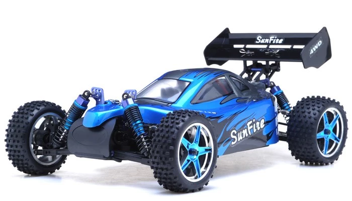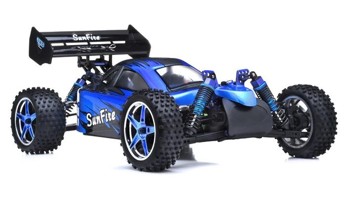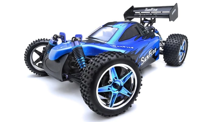 | The popular 1/10 scale four wheel drive electric powered off-road buggy has evolved into an exciting new platform. At each evolutionary step, the SunFire Brushless Pro has been improved upon to keep it at the peak of the buggy class. So how did Exceed make the SunFire Brushless Pro even better? The focus of our improvements was on increasing speed, more adjustability, and increasing durability. Now the updated SunFire Brushless Pro is packed with features that have been suggested by SunFire owners. There’s more room for electronics, easier access to the differentials, more control over suspension adjustments, a more powerful programmable ESC, and sealed gears. Designed using the latest in Brushless technology, the result is nothing less than the best SunFire Brushless Pro ever. |