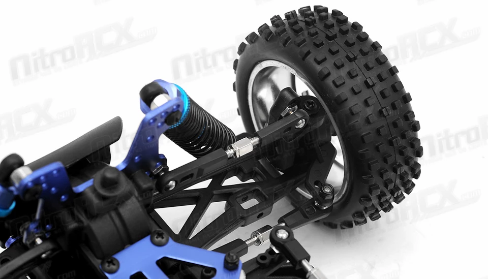 Suspension: Aluminum body shocks with threaded shock collars