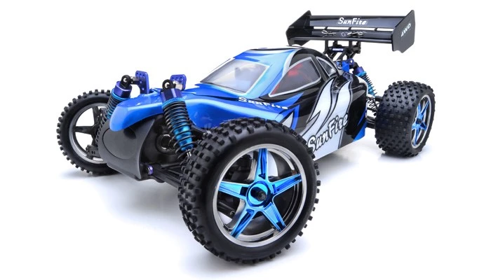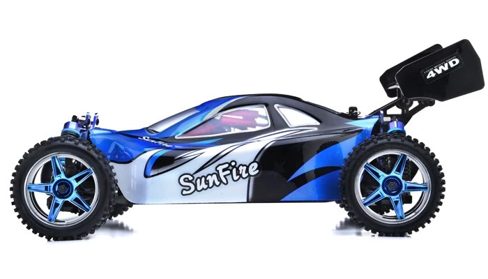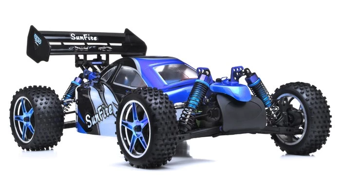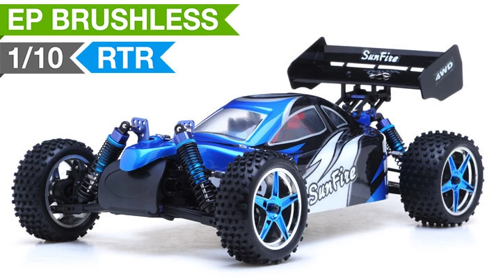 | The popular 1/10 scale four wheel drive electric powered off-road buggy has evolved into an exciting new platform. At each evolutionary step, the SunFire Brushless Pro has been improved upon to keep it at the peak of the buggy class. So how did Exceed make the SunFire Brushless Pro even better? The focus of our improvements was on increasing speed, more adjustability, and increasing durability. Now the updated SunFire Brushless Pro is packed with features that have been suggested by SunFire owners. There’s more room for electronics, easier access to the differentials, more control over suspension adjustments, a more powerful programmable ESC, and sealed gears. Designed using the latest in Brushless technology, the result is nothing less than the best SunFire Brushless Pro ever. |