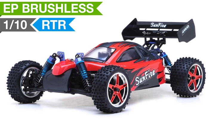| The popular 1/10 scale four wheel drive electric powered off-road buggy has evolved into an exciting new platform. At each evolutionary step, the SunFire Brushless Pro has been improved upon to keep it at the peak of the buggy class. So how did Exceed make the SunFire Brushless Pro even better? The focus of our improvements was on increasing speed, more adjustability, and increasing durability. Now the updated SunFire Brushless Pro is packed with features that have been suggested by SunFire owners. There’s more room for electronics, easier access to the differentials, more control over suspension adjustments, a more powerful programmable ESC, and sealed gears. Designed using the latest in Brushless technology, the result is nothing less than the best SunFire Brushless Pro ever. |