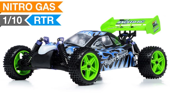 Exceed RC Hyper Single Speed Buggy Radio Car 1/10 2.4Ghz .18 Engine Nitro Powered Off Road Buggy Fire Black RC Remote Control
