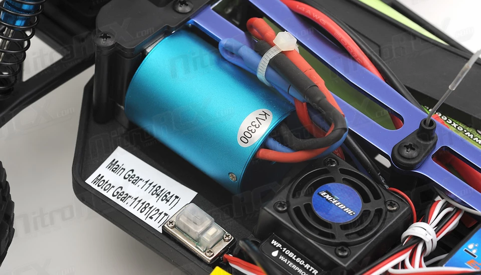 The Infinitive EP is powered by a sensorless Brushless Motor rated at 3300KV @ 12Turns and a programmable 60amp ESC, thats capable of handling 4-7s Nickel batteries or 2s to 3s LiPo batteries. This new power train is easily capable of providing reliable and consistent power for extreme off-road driving. Best of all, the motor and transmission are both completely sealed to prevent dirt and grime from getting in and causing damage. This motor has been proven to be both durable and reliable, making the Infinitive EP a welcomed addition to the latest Exceed RC line. With 20 exciting color schemes to choose from the Infinitive EP is sure to be a favorite for RC enthusiasts everywhere.