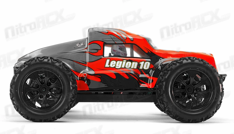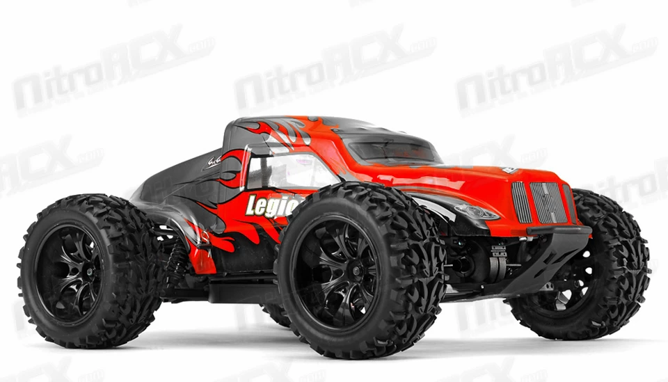 You are looking at the newest monster truck derived from the Exceed Racing Factory. This is a complete ready to run short desert monster truck. It includes a brushed waterproof electronic speed controller with proportional forward and reverse function. The electronic speed controller pushes power to a high torque 550 canned brushed motor. The power delivery is enough to spin the tires and perform massive dirt roost just like a real monster truck would. Aggressive monster truck tires mated with beefy off road wheels ensure traction and control in a variety of landscape conditions. The Legion truck platform consists of a shaft driven? 4 wheel-drive system, geared differentials, aluminum upper deck chassis, aluminum drive shaft, metal axes and oil-filled shock absorbers with progressive springs to tame any terrain. The steering mechanism is handled by a high torque servo allowing aggressive all terrain driving. The entire chassis is enclosed in a durable composite roll cage with scale driver and co-pilot included. Dirt, sand, snow, mud, rain, this truck will smash through it all.