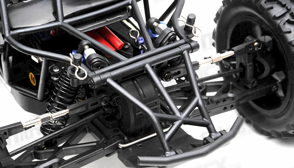 This truck is ready to run. It includes an Exceed RC 2.4ghz radio control system for optimum driver and machine communications. It also included a 7.2v 1800mah Ni-MH battery and charger.