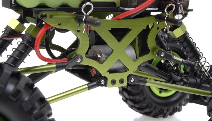 The Mini Rock Crawler embodies good features from real rock crawlers. Multi-link suspension and axles provides all 4 wheels through A center-mounted 3-gear transmission, providing tremendous grip and torque at all times and overcome any obstacle that it may meet with.