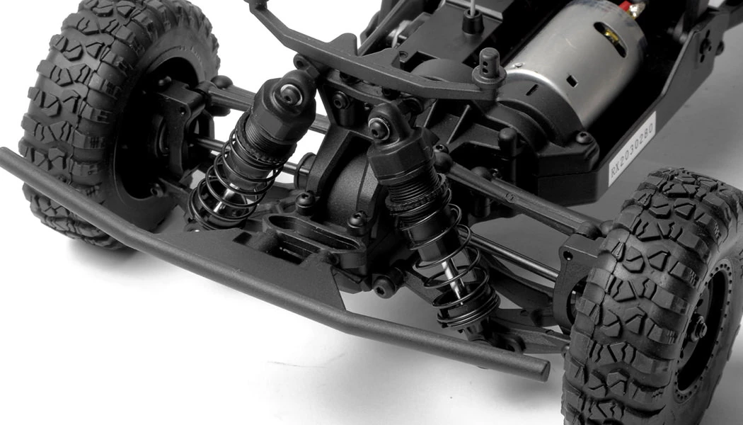 NitroRCX has entered the trophy truck market with the 1/16th MadRock. Want to take on the Rock Racing series then the Exceed RC MadRock is ready for you! Similar to it’s larger 1/10 brother it deatures aunique chassis design of the MadRock which gives you the realistic driving characteristics of a full sized trophy truck. It features a 4-link solid rear axle with independent front suspension for the true rock racing experience.