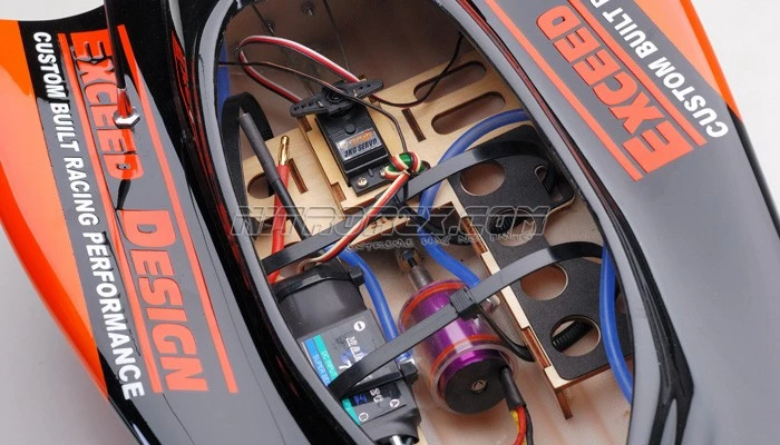 This is the new Exceed Vyper 24 in. Fiberglass Electric RC Boat. Highly detailed features make this boat one of a kind. This RC boat comes with a high performance racing 2848-2636kv Brushless motor and a 60A Brushless ESC for super fast speeds and great maneuvering capabilities. Measuring over 24 inches long and featuring a professional large torsion propeller, water-cooled engine, and this RC boat is perfect for ponds, rivers, and lakes. Take this fully functional reproduction of an offshore boat out to the water and watch it cruise! This RC boat is ARTR (Almost Ready-to-Run) you need a receiver, and a transmitter to get it out cruising on the water.