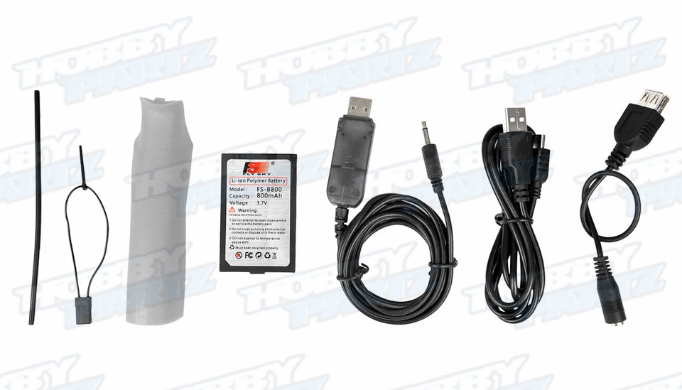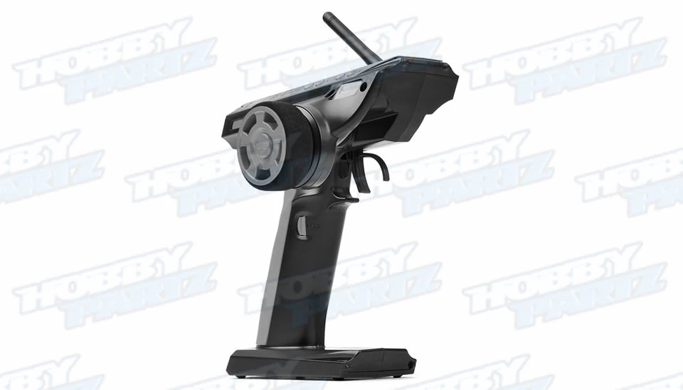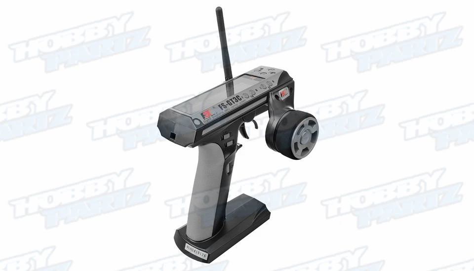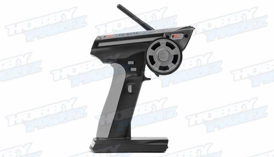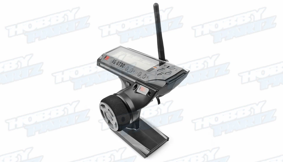 The all new Fly Sky GT3C 2.4ghz transmitter is equipped with loads of new features. New and improved power system features a 3.7v Lithium Polymer battery for longer run times and gives the user savings on purchases of AA batteries. Well all know those AA batteries drain out way too fast! A feature we really like is the scroll/select button for quicker selection of the menus and settings. The large LCD screen is easy to read and allows the user to quickly set parameters. The Dual Rate button is set right near the thumb to allow for quick adjustments without taking your eyes off of the vehicle your driving. The larger font for trims are also easier to read. The LCD screen has a white backlight screen instead of the blue found on the GT3B which we found is easier on the eyes. The GT3C comes with 2 different rubber grips that allow fine tuning for hand comfort and will suit a variety of hand sizes. The foam on the steering wheel has a very comfortable grippy feel. The GT3C only weighs 330grams with the battery which is extremely light and handy. The entire package comes ready to go with charger cable included.