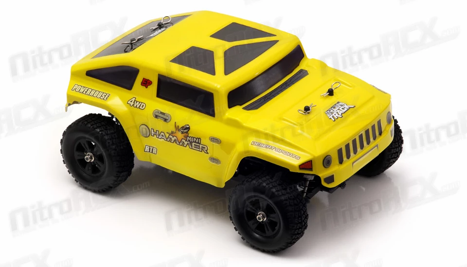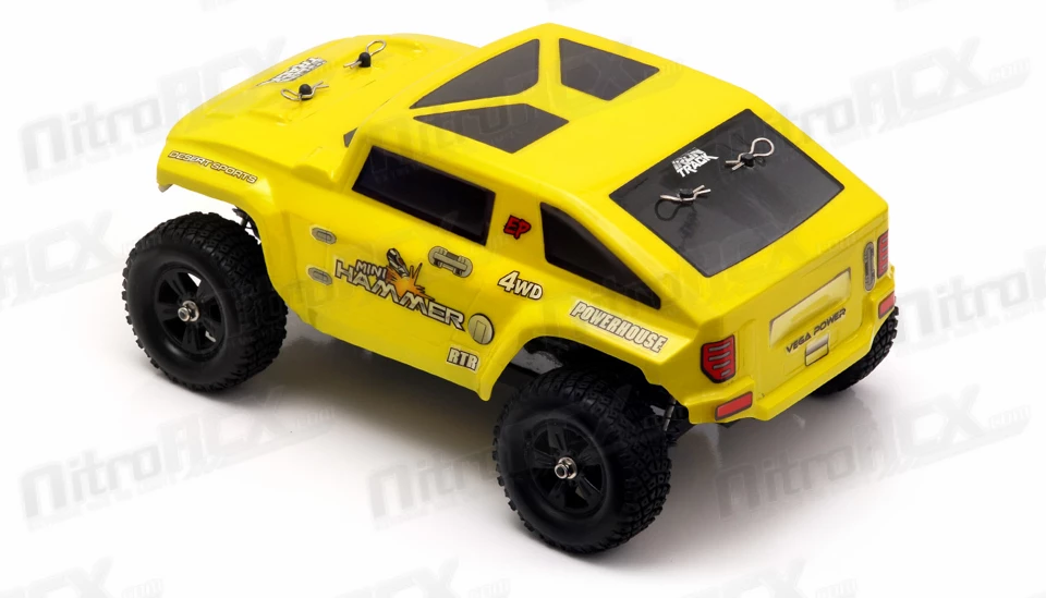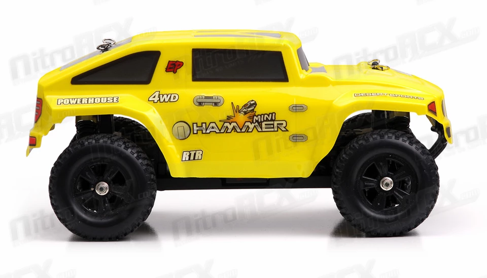 Iron Track introduces its newest 1/18 scale Hammer Smasher Truck. This small scale monster truck has all the key features of bigger 1/10 vehicle such as shaft driven four wheel drive, durable differentials, oil filled shocks, and robust design. It’s all packed into a robust machine that will fit in the palm of your hand. The Hammer is also fully equipped with a powerful brushed motor and electronic speed controller combo. The compact Hammer chassis lets you take on other road vehicles in wheel-to-wheel action, allowing you transform your yard into a fun offroad course!