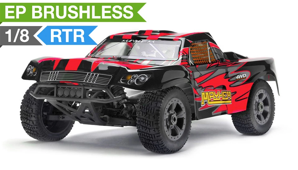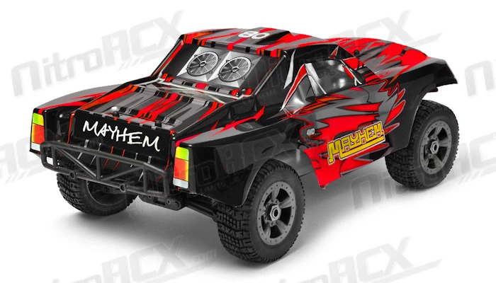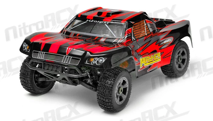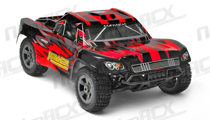 Experience the thrill of Short Course Racing! Enjoy the exciting power of four wheel dirt pounding power sliding action that only a four wheel drive short course truck can deliver. Look no further than the high performance Mayhem from Iron Track.