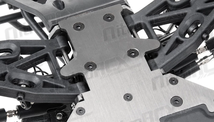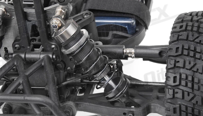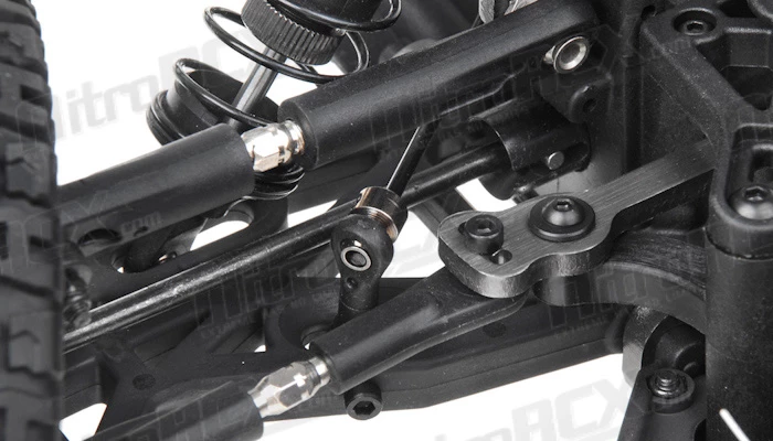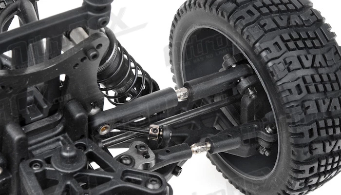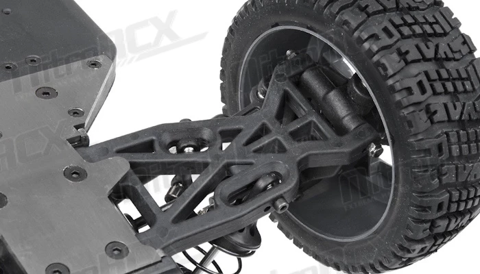 Taming all the jumps, bumps and ruts is the fully independent suspension system. This system also features adjustable camber, roll centers and many other tuning options should you like to change your driving experience to totally dominate your competition. The high volume ?Big Bore? oil filled shock absorbers are also fully adjustable, allowing you to fine tune your suspension to whatever conditions you are facing with your truck. With all the dirt, dust, sand, smashing that this Mayhem is going to go through. Iron Track even provides a ?dust cover? for the chassis to protect it from the elements.