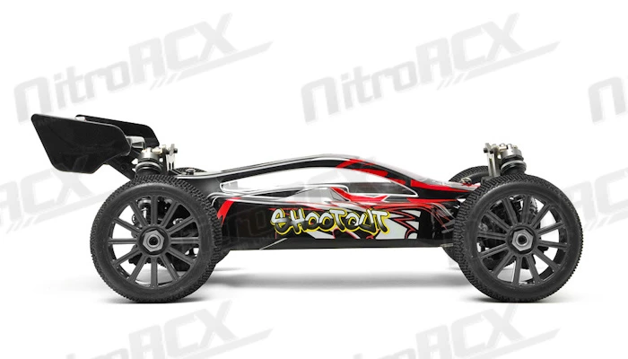 The Shootout enjoys all the benefits and convenience of electric power in one awesome, ready to race package. The 1/8 scale buggy class has been touted the ?F1? of radio control racing and the Shootout lives up to that enormous claim. It also brings less complicated and more reliable operation than conventional nitro powered buggies. Simply charge your batteries, turn on you radio and start tearing up your local park or race track.