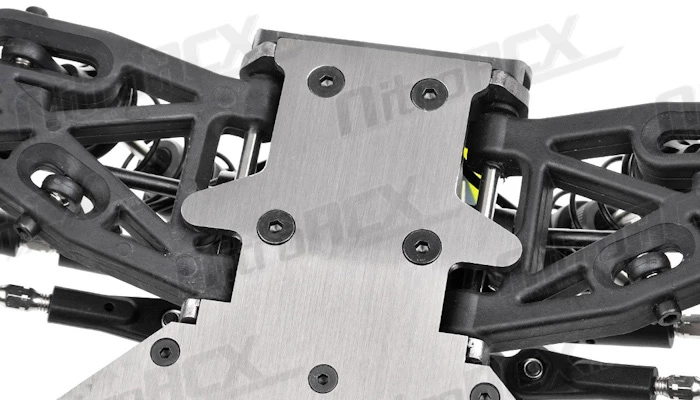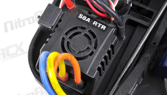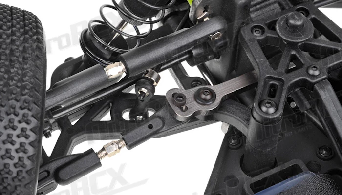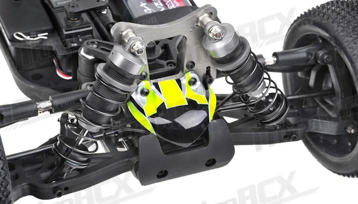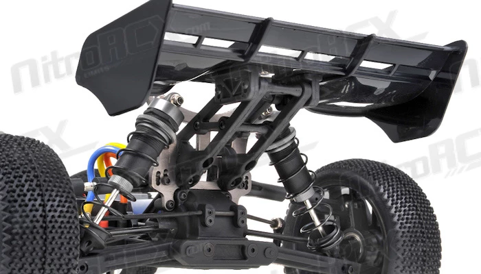 Taming all this power is done by the same reliable, high performance three differential drive-train. The suspension of the Shootout is optimized for electric power, and is closely related to the superb WindStorm platform. It features fully independent suspension front and rear with adjustable camber, roll center, toe, and many other tuning options. The high volume big bore oil filled shocks are also fully adjustable, allowing you to fine tune the buggies dampening characteristics.