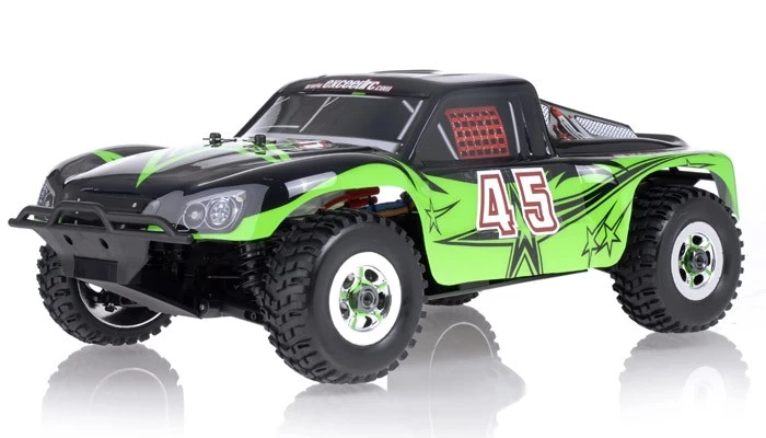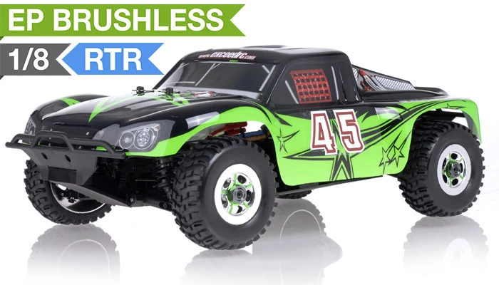 This massive 1/8 MadBash EP Brushless Short Course Truck comes with 540L Brushless Motor for speed of swiftness, twin 7.4v 3300mAh 20C Lipo Battery pack, polished aluminum chassis to provide clean look as well as sturdiness, and adjustable shocks to have perfect landing. The impressiveness of the MadBash EP can be seen right out of the box when examine at first glance from the well-built interior to the magnificent exterior designs. From the front bumper to the back bumper all pieces have been build to last. Included in the MadBash EP are aluminum chassis plate, and heavy duty metal gear steering servo so you donÂ’t have to worry about it breaking. Even the rims are now hardened chrome rims and colossal tires to triumph over the world. Use the MadBash EP to climb off road terrain, stony hills, rocky backyards, or wherever the road may take you. For the MadBash EP will lead the way to new standards for the RC world and conquer all.