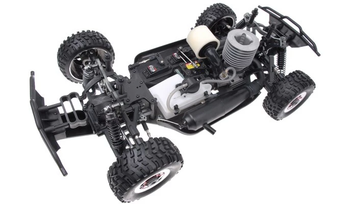 This massive 1/8 MadBash GP Nitro Rally comes with .21 engine for speed of swiftness, polished aluminum chassis to provide clean look as well as sturdiness, and adjustable shocks to have perfect landing. The impressiveness of the MadBash GP can be seen right out of the box when examine at first glance from the well-built interior to the magnificent exterior designs. From the front bumper to the back bumper all pieces have been build to last. Included in the MadBash GP are aluminum chassis plate, and heavy duty metal gear steering servo so you donÂ’t have to worry about it breaking. Even the rims are now hardened chrome rims and colossal tires to triumph over the world. Use the MadBash GP to climb off road terrain, stony hills, rocky backyards, or wherever the road may take you. For the MadBash GP will lead the way to new standards for the RC world and conquer all.