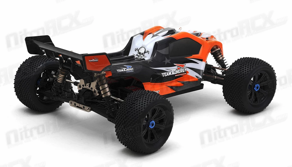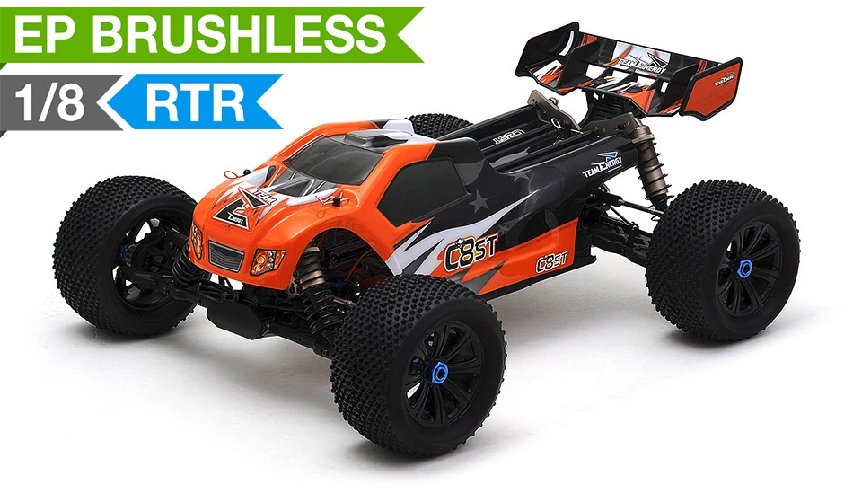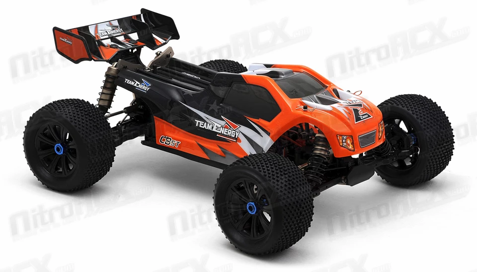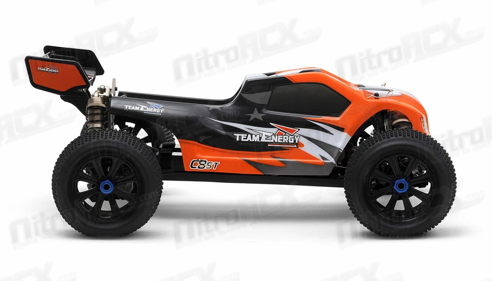 Team Energy has developed an all new 1/8 scale racing chassis. This machine is built solid and sturdy to handle tough terrain while its suspension and controls handle like a precision F1 race car. This is a ready to run truggy that you can take to jumps for big thrills or take it to a track for top level racing competition. The C8ST electric powered truggy has everything that a basher or racer would want packed into an amazing radio controlled racing vehicle.Â